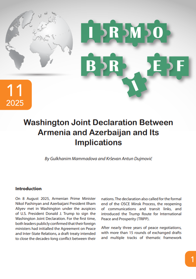 Books and ArticlesTopchubashov CenterWashington Joint Declaration Between Armenia and Azerbaijan and Its Implications webmaster4 months ago01 mins https://irmo.hr/wp-content/uploads/2025/11/IRMO-Brief-11-2025.pdf Post navigation Previous: Military power balance: The regional reality of the U.S.–China rivalryNext: Gulkhanim Mammadova participates in training in Vienna